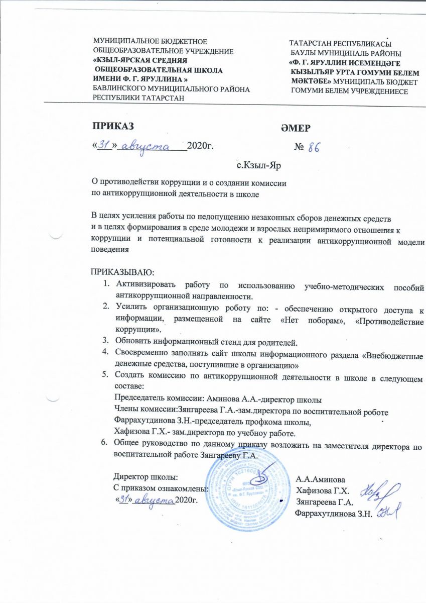 О противодействии коррупции и о создании комиссии по антикоррупционной деятельности в школе
