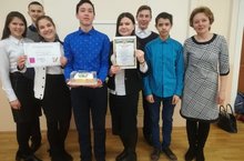 Победители муниципального тура НПК "Будущее начинается сегодня". Зариева Г. - 1место, Газимов И. и Тазетдинов И.-1 место, Тухватуллинн А. и Зайнуллина Л. - 2 место, Лутфуллина К. номинация "Лучшая защита работы".