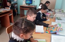 Библиотекарь школы Тухватуллина И.Н.рассказала учащимся нач.классов об истории создания школьной библиотеки, о библиотечном фонде, о создании тематических выставок.