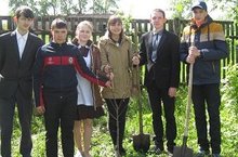 Учащиеся 9 класса в школьном саду посадили яблони.