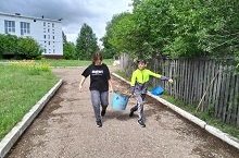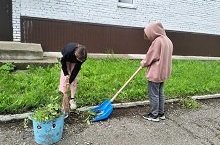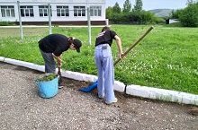 Школьный трудовой отряд. Уборка территории 15.07.2023