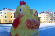 Преподаватели художественного отделения Тагирова З. Б., Ахметзянова Р. З., Нафикова Р. И., Морозова Г. М. на Площади Октября слепили главный символ года - яркого Петуха.