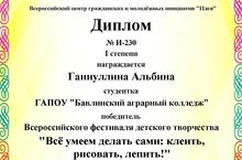 Совсем недавно, такие активные и целеустремленные студенты, под руководством преподавателя татарского языка и литературы Мусифуллиной Рины Наиловны, приняли участие во Всероссийском фестивале детского творчества «Всё умеем делать сами: клеить, рисовать, лепить!». Мероприятие было организовано Центром гражданских и молодёжных инициатив «Идея» г. Оренбурга. Целями и задачами Фестиваля было развитие творческих способностей, воображения и фантазии детей, а также объединение взрослых и детей для совместного творчества.