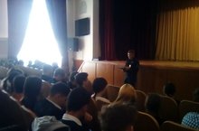 Информационный час 13.09.2019 В рамках месячника "Экстремизму - Нет!", информационный час на тему "Мое мирное время"из цикла «Университет "Закон и право" для студентов провели в Доме культуры имени М. Джалиля. На мероприятие был приглашен уполномоченный полиции ОУУП и ПДН отдела МВД России Бавлинскому району Хабипов Альберт. Ранее он уже встречался со студентами Бавлинского аграрного колледжа, и выступил перед первокурсниками, с целью воспитания терпимого отношения друг к другу, способствования формированию умения жить в мире с другими людьми. На сегодняшней встрече страж порядка остановился на признаках поведения, которые могут рассматриваться как проявления экстремизма. Он призвал молодых людей к толерантности во взаимоотношениях со сверстниками, терпимо и с уважением относиться к представителям других этносов и вероисповеданий, более бережно относиться к политическим и культурным взглядам других людей. Он также отметил, что экстремизм - идеология разрушения и насилия, угрожающая стабильности жизни людей - все чаще проявляет себя во всем мире. Поэтому важно, чтобы каждый молодой человек мог противостоять влиянию экстремисткой идеологии. Альберт Радимович рассказал студентам об ответственности, предусмотренной за правонарушения экстремистской направленности. Также он остановился на основах правового воспитания молодежи и профилактике антиобщественного поведения среди подростков. Участникам мероприятия был продемонстрирован видеоролик.