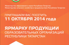 В субботу 11.10.2014 г. в агропромпарке г.Казани состоялась традиционная ежегодная ярмарка сельхозпродукции образовательных учреждений Татарстана с участием районой республики.Торговые ряды посетил премьер-министр Татарстана Ильдар Халиков. Ярмарка в этом году впервые прошла в столь крупном масштабе. Собственную сельскохозяйственную продукцию представили образовательные учреждения из всех муниципальных образований республики – профильные ссузы и школы, имеющие собственное сельхозпроизводство. Всего на ярмарке было представлено около 60 образовательных учреждений, которые привезли в Казань картофель, лук, морковь, свёклу, мясо, а также предметы народных промыслов.