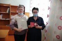 За многолетний добросовестный, плодотворный труд в сфере образования учитель русского языка и литературы Бакирова Римма Харисовна награждена Памятным знаком «100 лет образования Татарской АССР