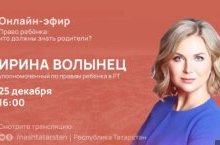 Программа с уполномоченным по правам ребенка в Татарстане Ириной Волынец начнётся сегодня в 16 часов -