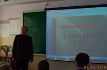 Урок Мужества был посвящен 75 летию со дня снятия блокады Ленинграда. На уроке учитель истории Чернов А.А. рассказал о 125 граммах блокадного хлеба, о тяготах того страшного времени.