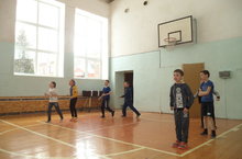 Для учащихся начального звена был организован волонтерский космический забег в спортзале школы.