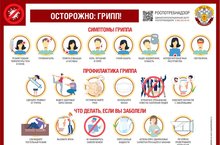 Что такое грипп и какова его опасность?Грипп — это инфекционное заболевание, заболеть которым может любой человек. Возбудителем гриппа является вирус, который от инфицированных людей попадает в носоглотку окружающих.Большинство людей болеют гриппом всего лишь несколько дней, но некоторые заболевают серьёзнее, возможно тяжёлое течение болезни, вплоть до смертельных исходов.При гриппе обостряются имеющиеся хронические заболевания, кроме этого, грипп имеет обширный список возможных осложнений:Лёгочные осложнения (пневмония, бронхит). Именно пневмония является причиной большинства смертельных исходов от гриппа.Осложнения со стороны верхних дыхательных путей и ЛОР-органов (отит, синусит, ринит, трахеит).Осложнения со стороны сердечно-сосудистой системы (миокардит, перикардит).Осложнения со стороны нервной системы (менингит, менингоэнцефалит, энцефалит, невралгии, полирадикулоневриты).Чтобы избежать возможных осложнений, важно своевременно проводить профилактику гриппа и правильно лечить само заболевание.Обычно грипп начинается внезапно. Возбудители гриппа, вирусы типов А и В, отличаются агрессивностью и исключительно высокой скоростью размножения, поэтому за считанные часы после заражения вирус приводит к глубоким поражениям слизистой оболочки дыхательных путей, открывая возможности для проникновения в неё бактерий.Среди симптомов гриппа — жар, температура 37,5–39 °С, головная боль, боль в мышцах, суставах, озноб, усталость, кашель, насморк или заложенный нос, боль и першение в горле.Грипп можно перепутать с другими заболеваниями, поэтому чёткий диагноз должен поставить врач, он же назначает тактику лечения.Что делать при заболевании гриппом?Самому пациенту при первых симптомах нужно остаться дома, чтобы не только не заразить окружающих, но и вовремя заняться лечением, для чего необходимо немедленно обратиться к врачу. Для предупреждения дальнейшего распространения инфекции заболевшего нужно изолировать от здоровых лиц, желательно выделить отдельную комнату.Важно!Родители! Ни в коем случае не отправляйте заболевших детей в детский сад, школу, на культурно-массовые мероприятия. При гриппе крайне важно соблюдать постельный режим, так как при заболевании увеличивается нагрузка на сердечно-сосудистую, иммунную и другие системы организма.Самолечение при гриппе недопустимо, и именно врач должен поставить диагноз и назначить необходимое лечение, соответствующее состоянию и возрасту пациента.Для правильного лечения необходимо строго выполнять все рекомендации лечащего врача и своевременно принимать лекарства. Кроме этого, рекомендуется обильное питьё — это может быть горячий чай, клюквенный или брусничный морс, щелочные минеральные воды. Пить нужно чаще и как можно больше.Важно!При температуре 38 — 39°С вызовите участкового врача на дом либо бригаду «скорой помощи».При кашле и чихании больной должен прикрывать рот и нос платком или салфеткой.Помещение, где находится больной, необходимо регулярно проветривать и как можно чаще проводить там влажную уборку, желательно с применением дезинфицирующих средств, действующих на вирусы.Общение с заболевшим гриппом следует ограничить, а при уходе за ним использовать медицинскую маску или марлевую повязку.Как защитить себя от гриппа?Согласно позиции Всемирной орга