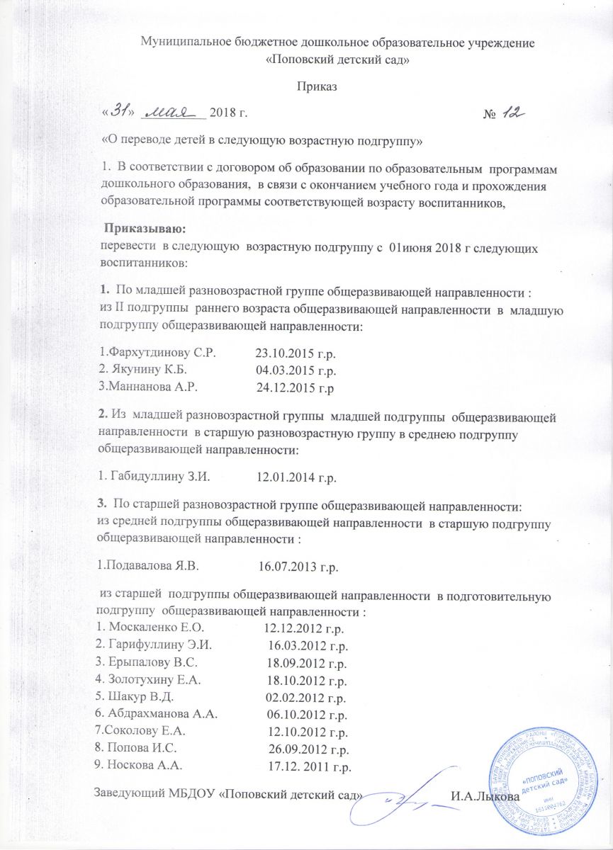 Приказ о переводе 2018 г.