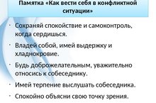 При потере контроля над эмоциональным состоянием следуйте правилам поведения при конфликте: