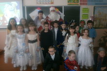 Сегодня в школе прошли новогодние елки для начальных классов. В начальном звене елка называлась «У новогодней ёлки». Настена, Марфа, Молодая Баба Яга, Старушка Баба Яга, бабаежки, Зимушка -зима и конечно же, как всегда были Дед Мороз и Снегурочка. Хороводы, танцы, игры, яркие костюмы всё это придавало радость наступившего праздника.