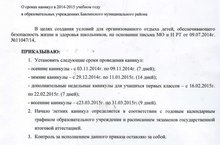 Приказ о сроках каникул в 2014-2015 учебном году в образовательных учреждениях Бавлинского муниципального района 07.08.2014