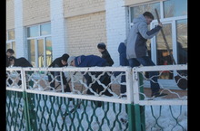 5-ые и 6-ые классы отмывали от зимней грязи площадку перед входом в школу. Классы постарше и сотрудники школы(учителя, техперсонал)раскидывали снег на территории школы.