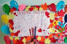 На доске благодарности школьники написали пожелания и слова благодарности учителям, поздравив их с Днем учителя в #ГодПедагогаИНаставника -