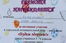 Сегодня команда нашей школы приняла участие в городской познавательной игре-викторине "Будем здоровы!" среди учащихся 3-х классов.