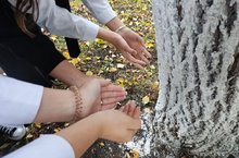 Участники акции набирали воду в сложенные лодочкой ладони и поливали цветы и деревья, отдавая дань памяти всем погибшим в терактах. -