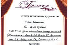 В районе прошло мероприятие «Театр яктылыкка, нурга илтә », которое было посвящено Году родных языков и народного единства в РТ. Учащиеся 2б, 3б, 6а, б классов и учителя родного(татарского) языка и литературы , учитель музыки приняли активное участие и заняли 3 место.