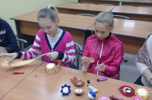 26 сентября в рамках добровольческой акции "Осенняя неделя добра" ученицы 5 -7 классов делали своими руками подарки для воспитанников приюта "Семья" - украшения, созданные в стиле "Канзаши".26 нчы сентябрь көнне, “Көзге шәфкатьлелек атнасы” кысасында, 5-7 нче сыйныф укучылары “Гаилә” приютында тәрбияләнүчеләр өчен үз куллары белән бүләккә бизәнү әйберләре ясадылар.