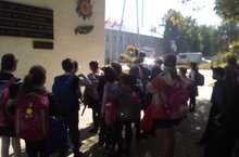 15 сентября прошла пожарная эвакуация учащихся и сотрудников школы, работники пожарно-спасательной службы показали первоклассникам устройство пожарной машины и рассказали о работе пожарных.15 нче сентябрьдә мәктәптә янгын чыгу буенча укучылар һәм мәктәп хезмәткәрләре өчен эвакуация узды. Янгын сүндерү хезмәткәрләре беренче сыйныф укучыларына янгын сүндерү машинасы һәм җайланмаларын күрсәттеләр, үз хезмәтләре турында сөйләделәр. -