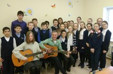 На урок музыки в 6 а классе по теме "Авторская песня" был приглашен известный в нашем городе исполнитель Марат Зиангараев. Ребята с удовольствием слушали песни в его исполнении и пели сами. Было очень интересно.