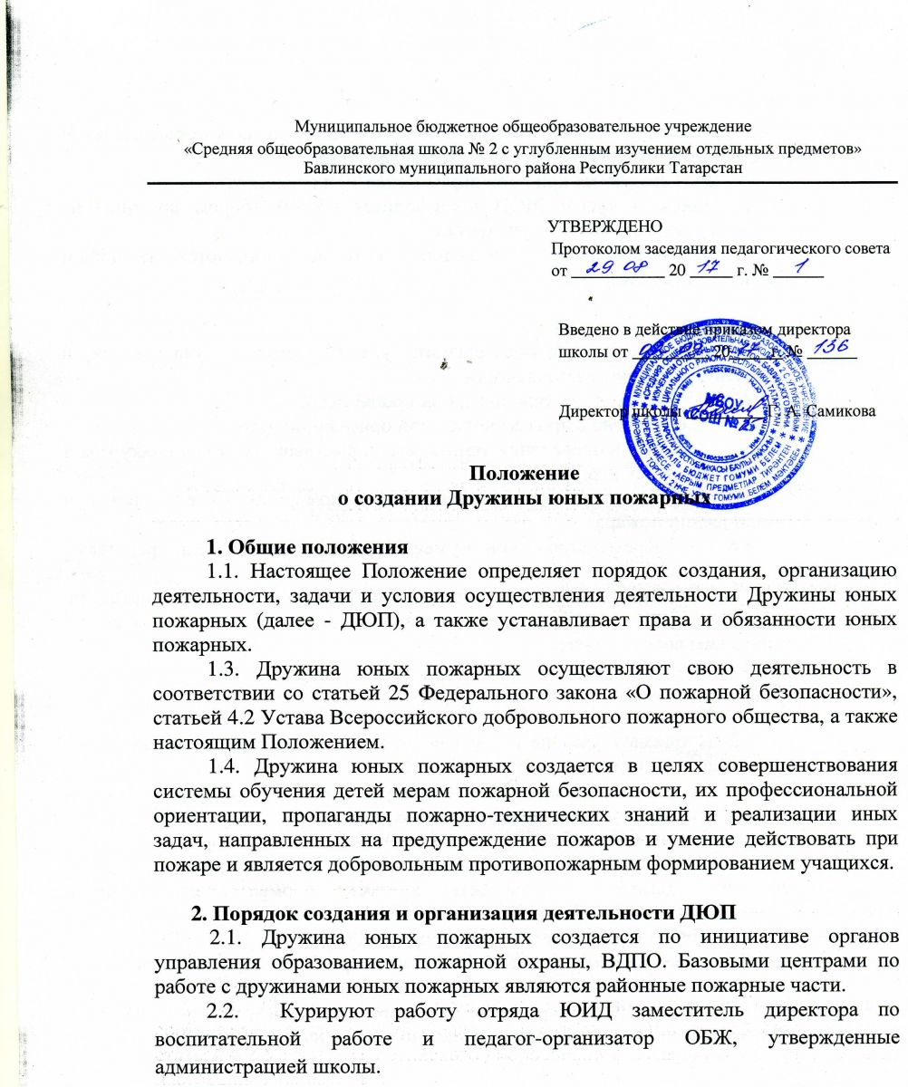 Положение о создании дружины юных пожарных 1 стр, 2 стр