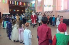 На радость нашей детворе начались новогодние утренники. Дед Мороз и Снегурочка поздравляли учащихся начальной школы с наступающим Новым годом. Им помогали клоуны Бим и Бом и даже Баба- яга с котом. И всё получилось замечательно, весело и увлекательно.