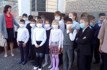 Во время линейки прозвучал звон, того самого колокола в знак Мира . Память погибших в страшных трагедиях почтили минутой молчания.