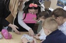 А также, с целью мотивации первоклассников на дальнейшее изучение английского языка, учителем Мухамадиевой А.З. проведено внеклассное мероприятие "Hello, English". В гости приехали Микки и Минни Маус, которые помогли детям в игровой форме повторить изученный материал на занятиях дополнительного образования "Говорим по - английски"