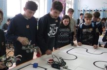 29 октября 2016 года. Учащиеся школы :Горбунов Владлен, Коннова Арина, Миннушин Артур и тренер Вильданова Ольга Вячеславовна выезжали на городские открытые соревнования «ЧЕЛНИНСКИЕ РОБОТЫ-2016» и приняли участие в номинации ЛИНИЯ (Бегом за покупкой в магазин). Ребята предварительно сконструировали и запрограммировали робота, в процессе соревнований пришлось нелегко, несколько раз отлаживали робота. Ребятам не удалось победить в этот раз,но мы не отчаиваемся, ведь это была наша первая попытка. Получили огромный заряд бодрости и стремления к высотам робототехники.