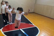 Сегодня первоклашкам удалось попробовать выполнить несколько нормативов, таких как прыжок в длину с места, метание теннисного мяча в цель , поднимание туловища из положения лёжа на спине.