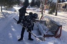 Акция«50 добрых дел» обучающиеся 7,8-х классов приняли участие в «Снежном десанте». Они очистили от снега скамейки в парке, дорожки.