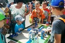 Сегодня, в первый день летних каникул, на площади Октября собрались сегодняшние и будущие школьники нашего города. Их ждали праздничные мероприятия: концерт, награждения за творческие успехи, различные аттракционы. Впервые состоялась выставка робототехники. От нашей школы приняли участие со своими экспонатами Габдреева Диляра, Миннибаева Лейсан, Леонтьев Глеб,Якупов Айрат ( IT класс), Миннушин Артур и Лучкова Аделина (кружок "Инфознайки") -