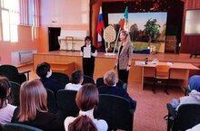 Директор киңәшчесе Гарифуллина Д.Р., 10 нчы сыйныф укучысы Кутуева Тансылу белән берлектә балаларга Россия гербының барлыкка килү тарихын сөйләделәр, ә балалар үзләренең иҗадилыкларын күрсәттеләр. Аларның бурычы: герб уйлап табу һәм сурәтләү иде. Барлык эшләр дә бик кызыклы килеп чыкты.