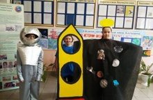 Сегодня, 12 апреля, утро в нашей школе началось с приветствия инопланетян и космической музыки. Началась "Гагаринская неделя". В фойе работает фотозона.