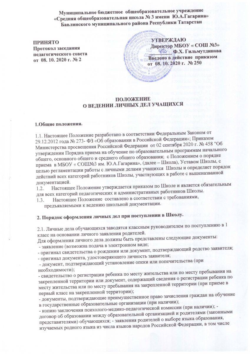ПОЛОЖЕНИЕ об использовании государственных символов в МБОУ «СОШ №3 им.Ю.А.Гагарина»