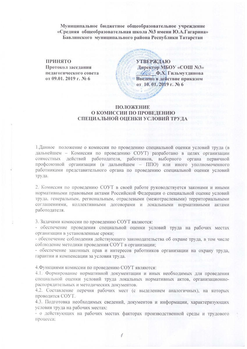 -Положение о комиссии по проведению специальной оценки условий труда;