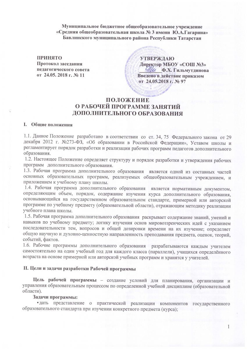 -Положение о рабочей дополнительной общеразвивающей программе;
