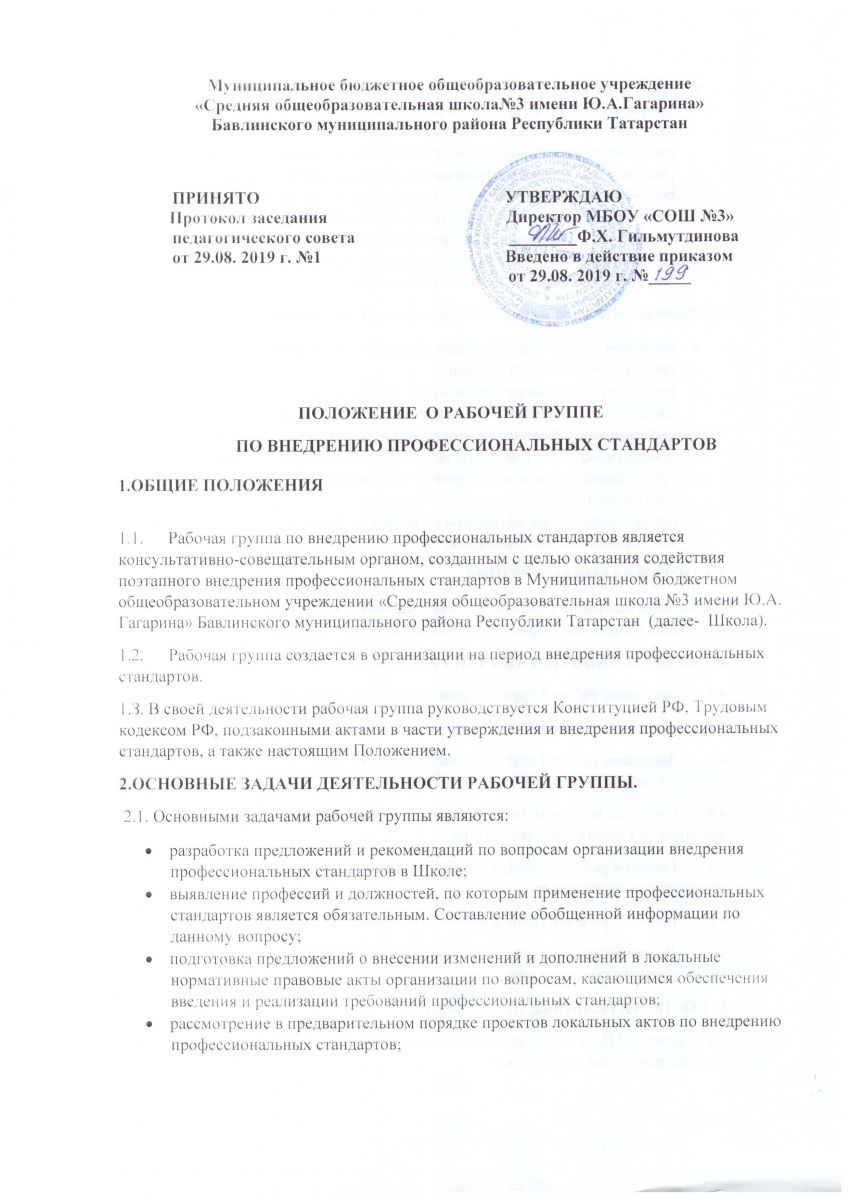 -Положение о рабочей группе по внедрению профессиональных стандартов;