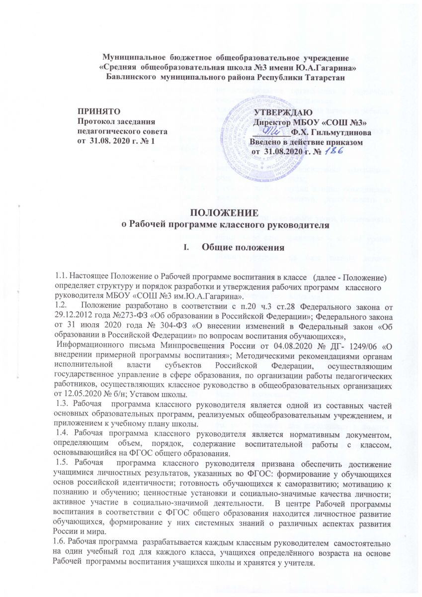 - ПОЛОЖЕНИЕ о Рабочей программе воспитания учащихся школы;