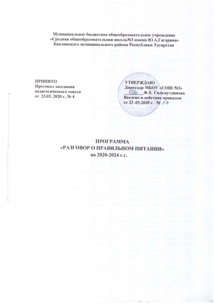 -Программ "Разговор о правильном питании" на 2020-2024 гг.