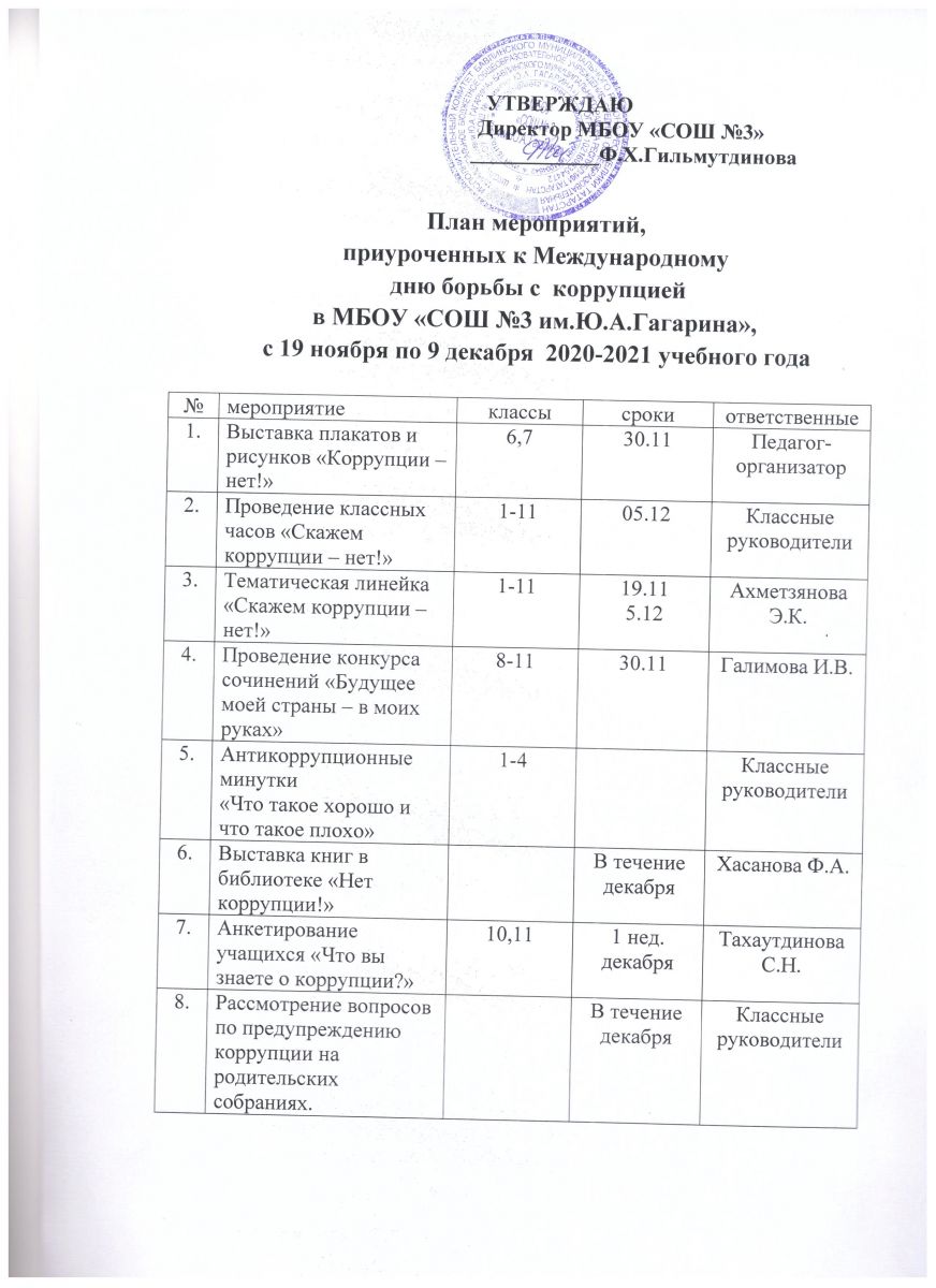 План мероприятий, приуроченных Международному дню борьбы с коррупцией/ Халыкара ришвәткә каршы көрәш көненә багышланган чаралар планы