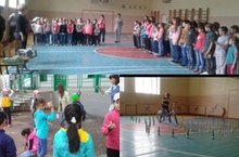 Сегодня для ребят была организована комбинированная эстафета: перенос раненного на носилках, стрельба из АКМ, бег, бросок мяча, прыжки через скакалку, ведение мяча.