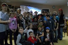 В «Библиотеке семейного чтения» прошло мероприятие под названием «Библио-сумерки. Свистать всех в библиотеку!». Мероприятие проводилось в 5 часов вечера, поэтому и название такое оригинальное. Были приглашены учащиеся 4 а и 3а классов. «Раз и два, и ты пират- быть пиратом каждый рад…» такими словами начали «библио-сумерки» Мадина Галимзяновна и Лейсан Ринатовна. Вскоре всех нарядили в « пиратские костюмы» и игра началась. Выбрали капитана, «построили корабль» и … поплыли.