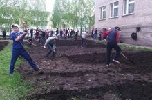 В 13 мая учащиеся 5 класса работали на пришкольном участке: убирали, копали, сажали морковь и свеклу.