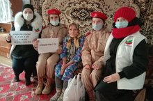 Волонтеры и юнармейцы нащей школы в рамках Дня добровольцев посетили ветерана труда, труженницу тыла Поджидаеву А.В.