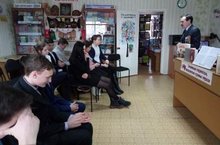 8 нче сыйныф укучылары Гаилә белән китап уку китапханәсендә булдылар. Алар Афганистандагы хәрби көрәшләрдә катнаштан Губайдуллин М.А. белән очраштылар.