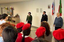 Россия Эчке эшләр министрлыгының Бөгелмә районы буенча начальник ярдәмчесе – шәхси состав белән эшләү бүлеге начальнигы, эчке эшләр подполковнигы Әхмәтҗанов Ленар Марс улы яшь армиячеләргә һәм 8-9 сыйныф укучыларына полициядә хезмәт итү шартлары һәм хезмәттәшләренең батырлыклары турында сөйләде.