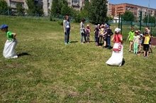 Сегодня в лагере прошел Малый Сабантуй. Ребята соревновались в разных играх: бег в мешках, перетягивание каната, битье горшка. Ребятам очень понравилась.